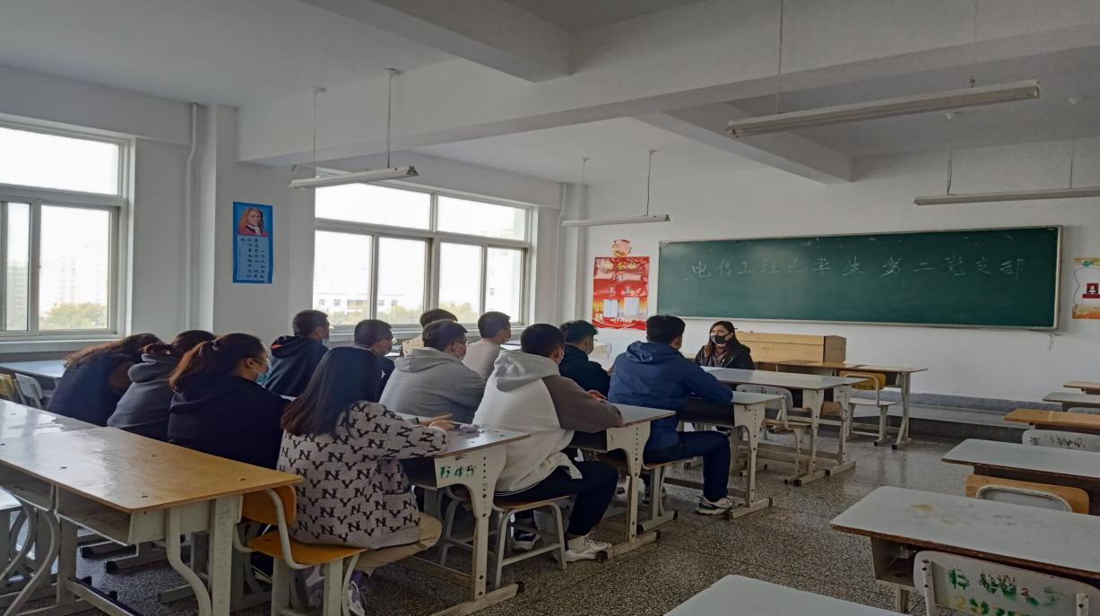 请党放心,强国有我。2021年11月20日,电信工程系学生第五党支部在支部书记张振丽的组织下,通过视频会议的方式召开了“十九届六中全会精神”专题学习会。会议中,张振丽指出当代大学生恰逢盛世,肩负重任,当赓续红色薪火,传承中国精神,争当攻坚克难的冲锋队,改革转型的主力军。做一个有志气的大学生,始终坚定理想信念,以青春之行照亮前景方向;做一个有骨气的大学生,不畏艰难砥砺前进,以青春之力推动转型发展;做一个有底气的大学生,拼搏奋斗自信自强,以青春之我阔步星辰大海,请党放心,强国有我。
