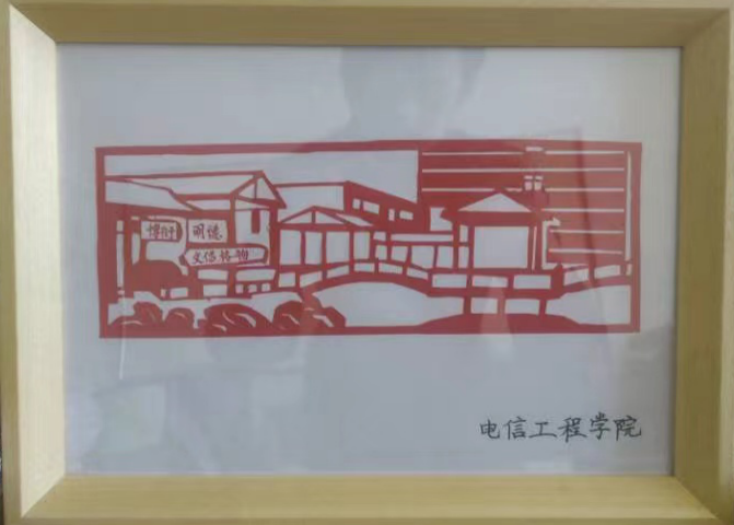 献礼活动之初,电信工程学院学生们自发地征集创意,采集照片,最终选用剪纸这一传统方式展示母校的风采,为母校献礼。4月30日—5月2日,同学们描绘学校校徽、图书馆、教学楼等5幅图画,并根据所描绘的图片制作剪纸,最终呈现出五幅精美作品。