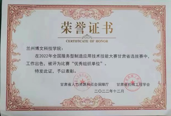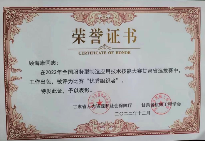 2022年11月8日,由甘肃省人力资源和社会保障厅、甘肃省机械工程学会主办,甘肃省机械科学研究院有限责任公司协办的全国服务型制造应用技术技能大赛甘肃省选拔赛顺利开幕,我院选派了34名学生参赛,分别参加了“计算机程序设计员”、“物联网安装调试员”、“数字化管理师”、“供应链管理师”四个赛项。