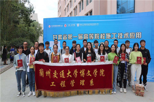 2019年9月21日至9月22日由甘肃省建筑业联合会主办、兰州工业学院承办的“甘肃省第一届高等院校施工技术应用技能大赛”在兰州工业学院正式拉开帷幕,通过“建筑工程专业知识问答”、“装配式建筑仿真实操”及“建筑工程模拟实操”三场激烈的角逐,兰州交通大学博文学院工程管理系的参赛队员取得了喜人的成绩:工造1队、建环风华正茂队、铭心战队及工造2队四个团队荣获团体三等奖;景瑞坤、王永梅、郭成珠、杨伟奇四名学生荣获个人二等奖;马艳霞、刘洋、李盼盼、田小林、王海青、张文6位学生荣获个人三等奖。
