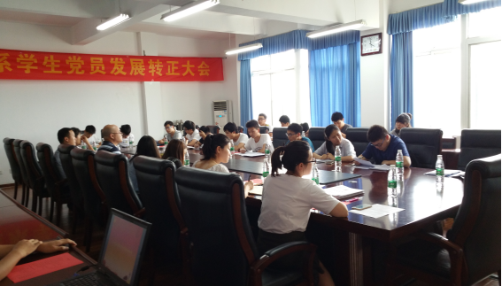 (通讯员 田克耘)为向中国共产党注入新鲜血液,培养优秀的后备军,我系学生党支部于2017年6月20日在知远楼会议室601召开学生党员发展与转正大会,本次会议主要讨论凌维铭、明政等6名预备党员的转正问题及陈乐义、张书盛等9名学生的发展入党问题。本次会议由学生党支部指导老师石晶晶老师主持,系主任王代萍、学生党支部书记杨英、副主任陈驰、辅导员王松、教学秘书甘雨、教师代表张斯阳、陈艳以及全体预备党员、以及部分积极分子参加本次会议。
