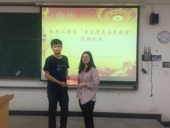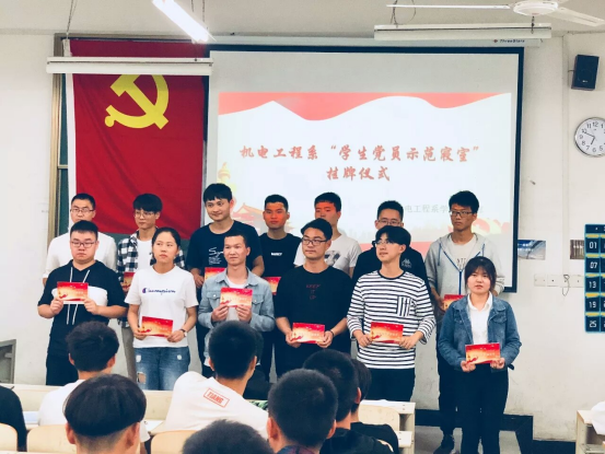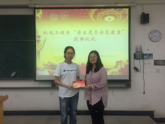 随后,进行“学生党员示范寝室”的授牌仪式。14名学生党员从石晶晶老师手上接过示范牌,表现出了获得肯定的欣喜和做模范标兵的决心。