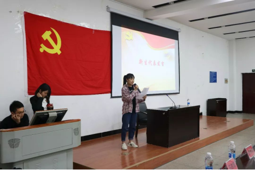 来自机械1801本班的张柳婷代表新生发言,她结合自身亲身经历谈到了对党的初认知,情真意切,表达了对加入中国共产党的决心与毅力。