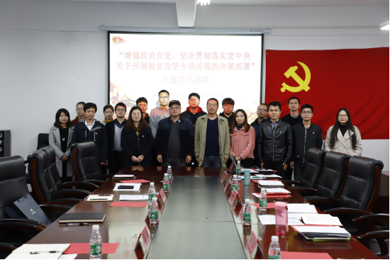 2018年11月7日下午2点bat365正版唯一官网党总支于知远楼601会议室召开了主题为“增强政治学习,坚决贯彻落实党中央关于开展脱贫攻坚专项巡视的决策部署”的党日活动。bat365院长王代萍,bat365副院长(兼副书记)陈驰,院学生党支部指导老师石晶晶,辅导员王松、李伟健,纪检委员(兼教秘)甘雨、教师陈艳、张斯阳、陈烨欣、马志德、宋涛、实验室教师何将及bat365在校学生党员参加了本次会议。会议由甘雨同志主持。
