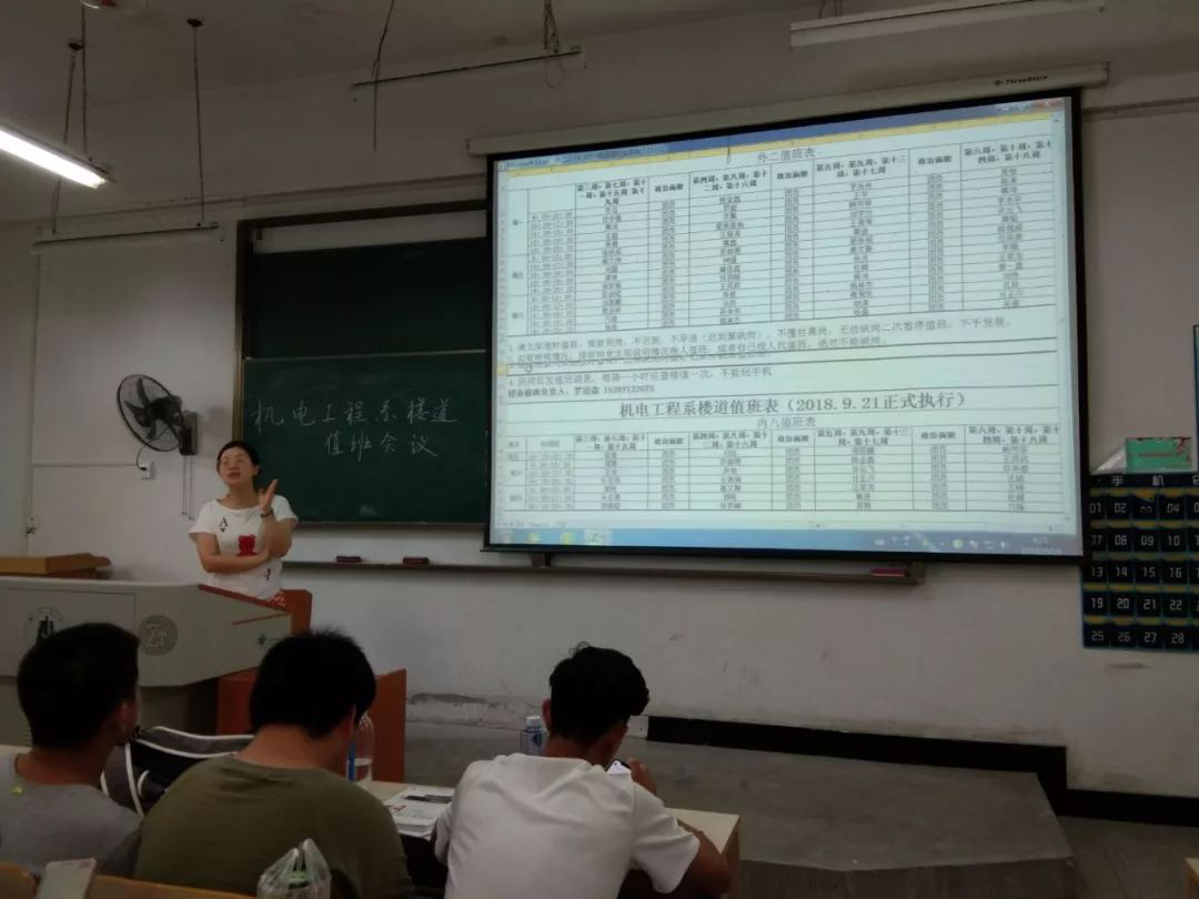 首先,党建指导老师石晶晶对上学年的工作做出了简单的总结,阐明了楼道值班的重要性。她对上学年部分同学们的积极行为表示肯定,同时也指出同学们在楼道值班过程中存在的一些问题。她根据之前的情况提出了要求,希望以后各值班人员能按时到岗,积极履行值班任务,为新生做好榜样,受到学校更多的关注和肯定。