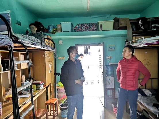 教师和学生干事分组对bat365学生内苑八号楼、内苑十一号楼、学生北苑一号楼、北苑二号楼所在寝室进行卫生安全和防疫管控情况检查,在检查过程中,老师们再次强调学校防疫制度,提醒同学们要注意继续做好防疫工作,要特别注重个人卫生问题:戴口罩,勤洗手,勤洗澡,勤更衣,勤洗衣,寝室常通风,不堆积垃圾,不吃生冷食物,常晾晒衣物床被子等,继续做好防疫常态化管理,出入校门打卡,早中晚健康上报,非必要不出校门,不随意离校、离汉等。在走访过程中,老师们还细心提醒同学们周末要大幅度降温,同学们要注意添加衣服,注意保暖,谨防感冒。