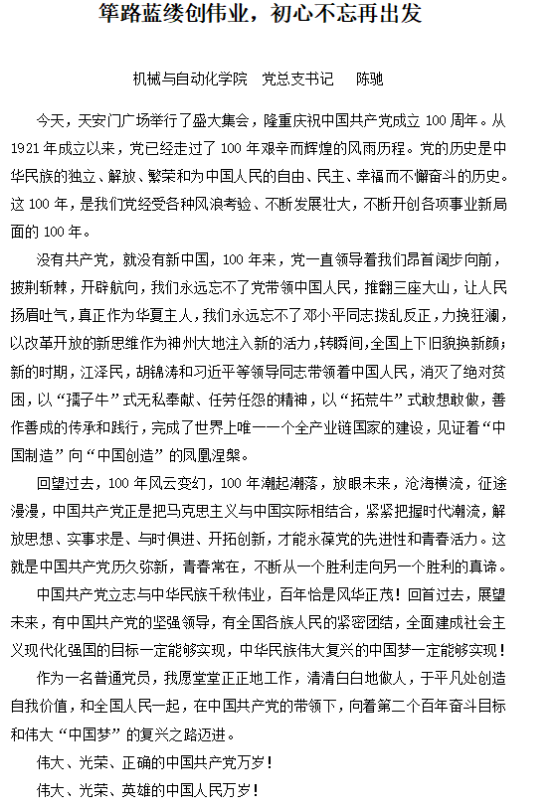 回望历史,中国共产党已经走过了100年艰辛而辉煌的风雨历程。这100年,我们党经受各种风浪考验、不断发展壮大,不断开创各项事业新局面。百年风雨砥砺,百年沧海桑田,在这一波澜壮阔的历史进程中,共产党紧紧依靠人民,跨过一道又一道沟坎,取得一个又一个胜利,为中华民族作出了伟大历史贡献。