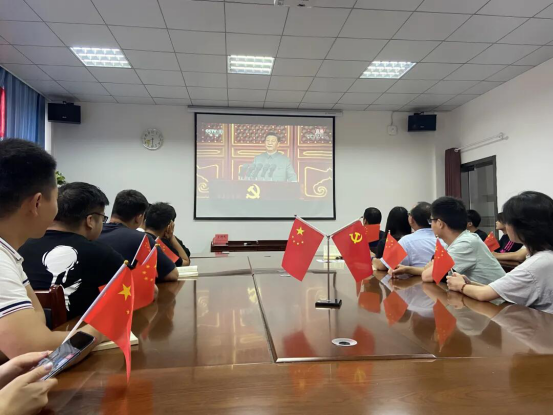 2021年7月1日上午八时,庆祝中国共产党成立100周年大会在北京天安门广场隆重举行。bat365正版唯一官网党总支于7时40分许组织全体教职工党员、学生党员共53人在bat365党员活动室集中观看了庆祝此次盛典。