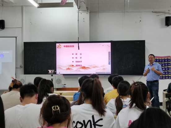 陈驰书记强调我们在面临百年未有之大变局,机遇和挑战并存,重要的是沉着应对,化危为机,让中国赢得更好的发展。牢固树立“四个自信”,坚定“两个维护”,撸起袖子加油干,为中华之崛起作出更大贡献。我们要讲好中国发展的故事,讲好中国合作共赢的故事,讲好中国共产党的故事,讲好中国特色社会主义的故事,来塑造良好的国家形象。我们要主动作为,做好自己的事,营造和谐的国际环境。