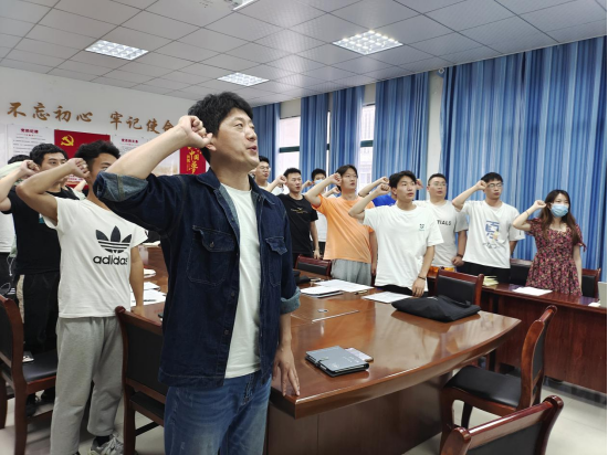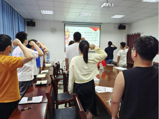 全体起立,由王松书记带领大家重温入党誓词。