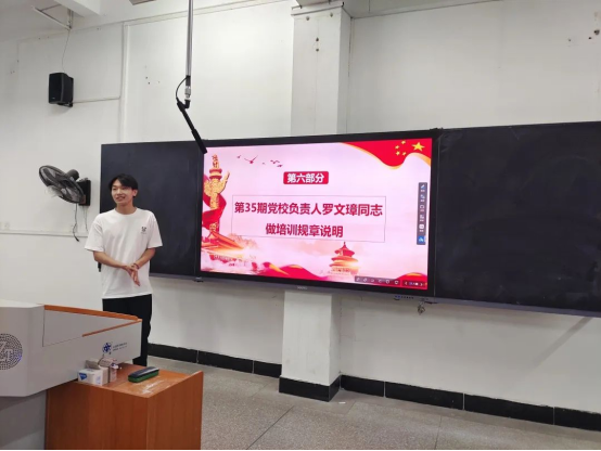 第35期党校负责人罗文璋同志做培训规章说明,强调党校学习纪律要求,思想汇报的收纳、党校考试的选拔安排,并希望在座入党积极分子们认真学习党的各项理论知识,顺利通过党校结业考试。