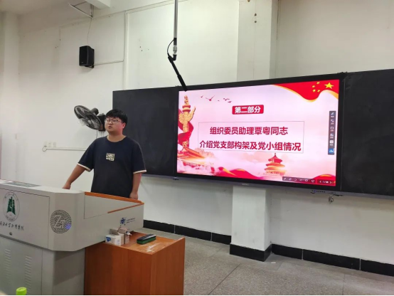 会议伊始,由执行委员孔维安同志通报与会情况。随后由执行委员覃粤同志介绍党支部架构及各党小组情况,并展示党支部活动照片,加强各入党积极分子对党支部的了解与认知。