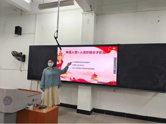 随后由执行委员吴易泽同志介绍发展党员流程,详细介绍入党积极分子的确立与发展对象的培养与考查、预备党员的接收、培养考察、转正等。