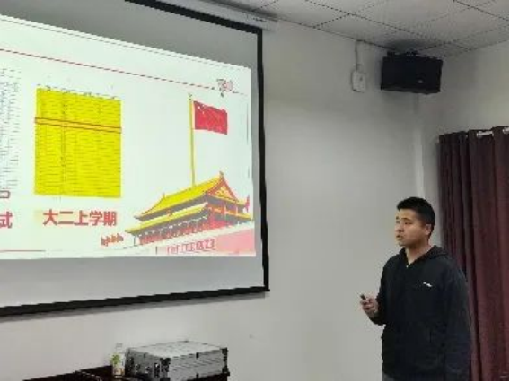 主持人刘柯宏宣布答辩会开始,全体起立,奏唱国歌。发展对象答辩正式开始。