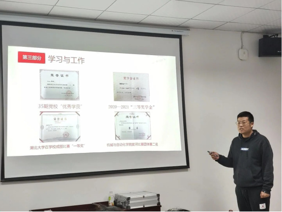 23位入党积极分子依次入场进行三分钟的PPT展示,答辩同学就自己在思想、学习、工作及生活等各方面情况作简要汇报,肯定自己的付出,反思自己的不足,表达对中国共产党的坚定信仰,自愿接受党组织的考察。