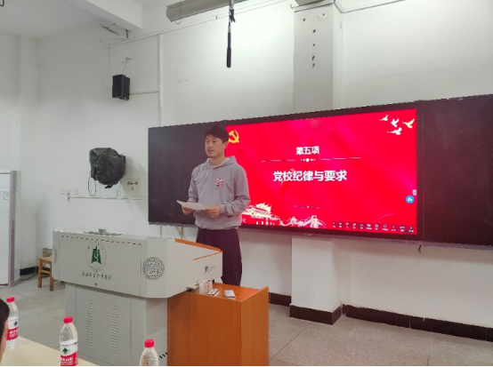 bat365正版唯一官网第二党支部书记王松老师详细说明了党校培训学习安排、考核方式以及入党积极分子培养考察教育等内容,并对党课纪律提出了明确要求。最后,他希望党校学员在日常生活中要严守纪律,遵守学校规章制度,养成良好习惯,成为律己明人的模范,做品德高尚,诚实守信,自立自强的新时代大学生。