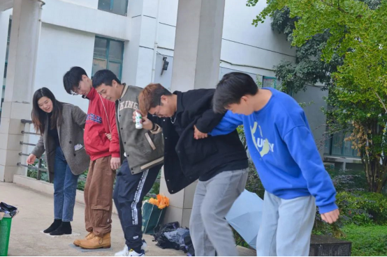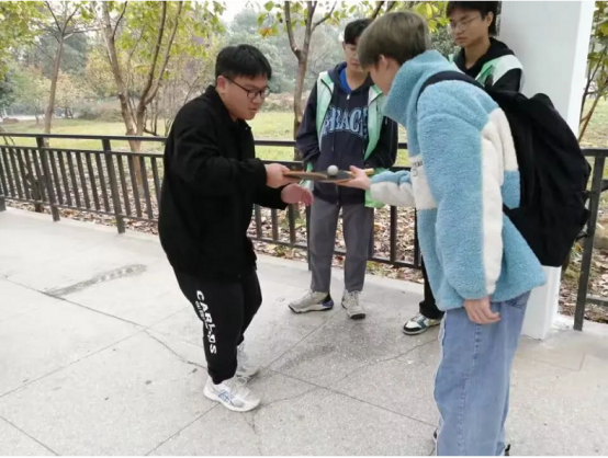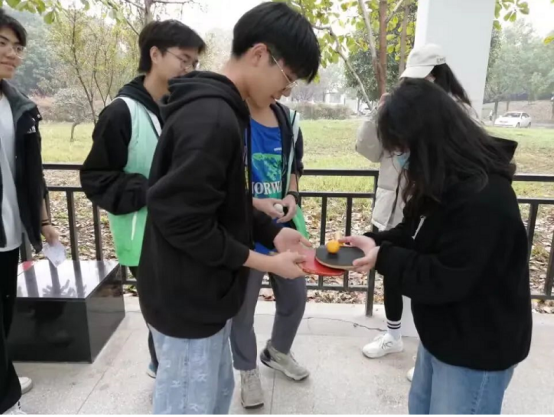 四到八人为一组,第一个人记下一个党史问题,传到最后一个人回答出问题的答案。传递问题的同时还要用乒乓球拍传递乒乓球。传得快,回答的多的一组获胜。