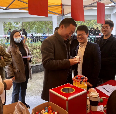 一轮游戏下来,大家带着自己手里的入场券来到兑奖处抽奖,丰厚的奖品,师生喜悦,奖品区一片欢声笑语,互相分享着自己获得的奖品。