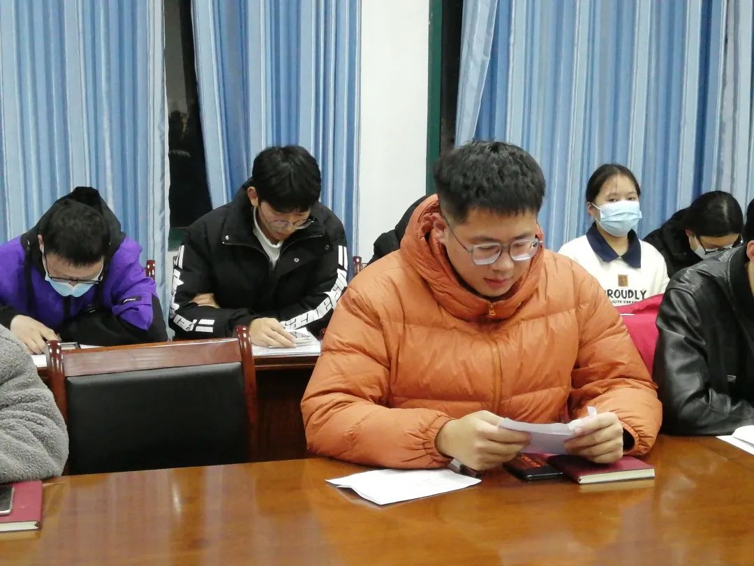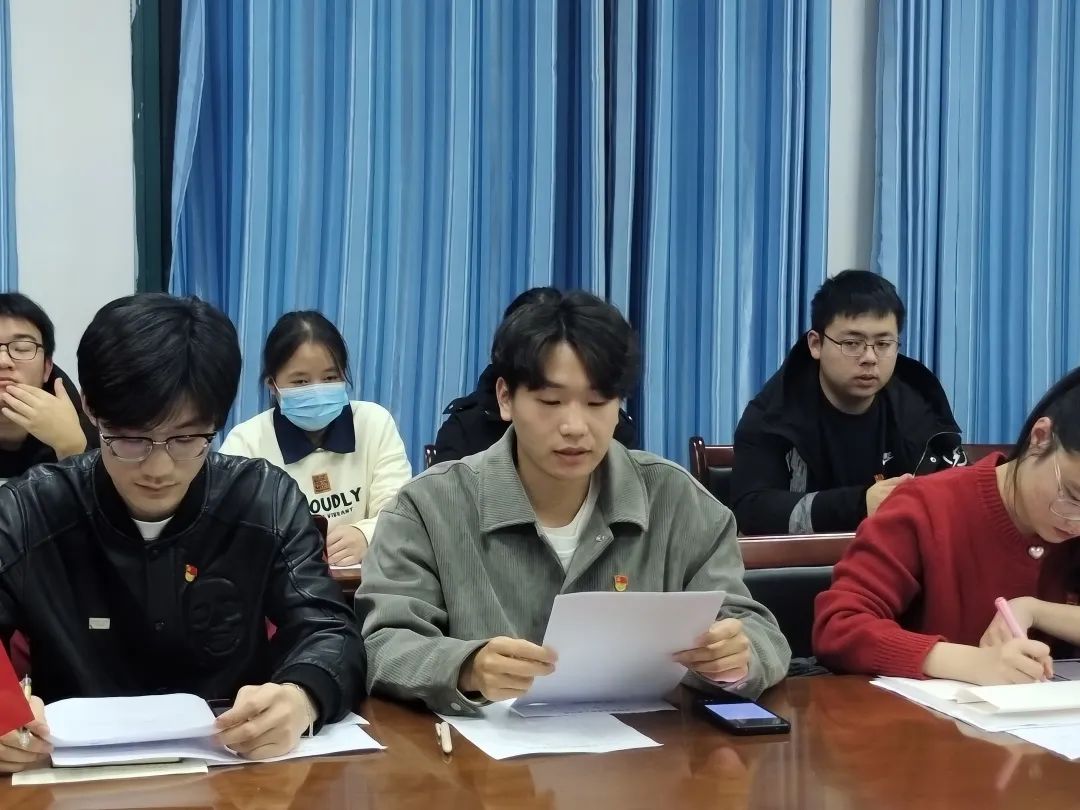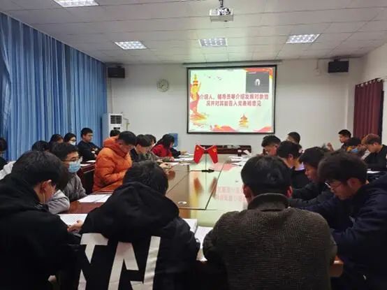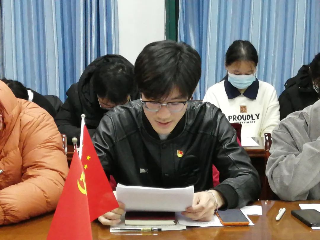 为进一步加强党员队伍建设,将优秀学生吸收进党组织,增添党员新生力量,赓续红色血脉,2022年12月5日晚上18:30,bat365正版唯一官网第二党支部于知真楼311会议室召开预备党员接收会议,讨论接收丁鹏等12名同志的入党问题。bat365党支部书记王松、指导老师石晶晶、辅导员李伟健,教师入党介绍人及全体在校学生党员,12位发展对象参与此次会议。