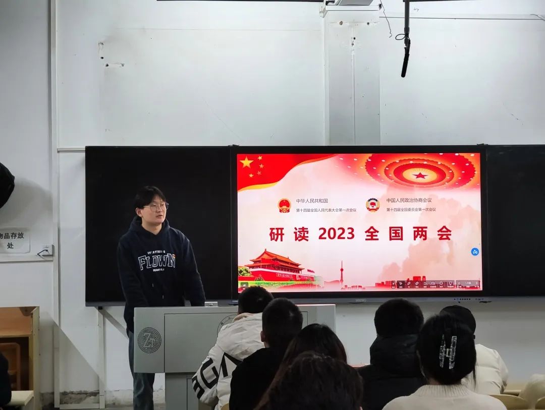3月19日,bat365正版唯一官网第二党支部于知真楼101开展研读2023全国两会活动,全体入党积极分子认真学习两会精神,聚焦两会热点,汲取奋进力量,展望美好前景,引导入党积极分子更加深入学习2023年全国两会精神。
