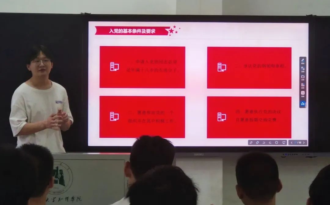 韩霄同志带领同学们重温入党的基本条件和要求,以及发展党员的程序。