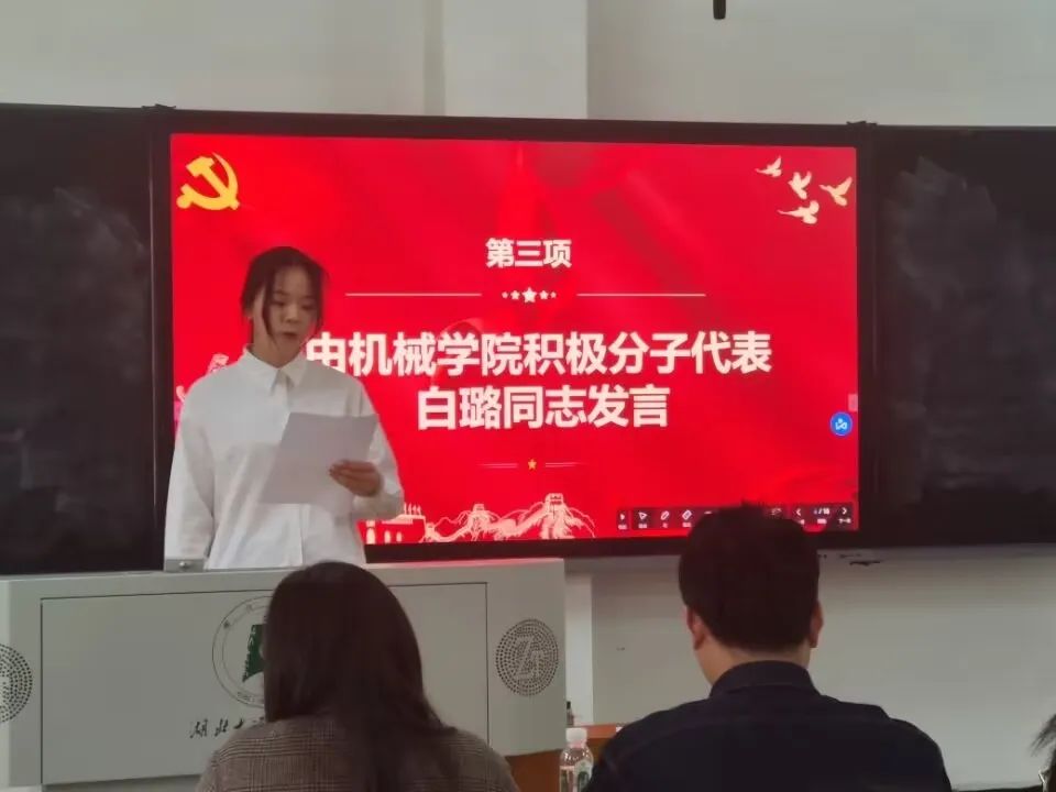 bat365正版唯一官网入党积极分子代表白璐上台发言,表示要进一步加强对党的理论知识的学习,端正学习态度,努力提高自身素养,工作能力,创新思维和党性修养,把政治理论知识同实际行动相结合,树立良好形象,发挥先锋模范作用,以学促进,争取早日成为一名优秀共产党员。
