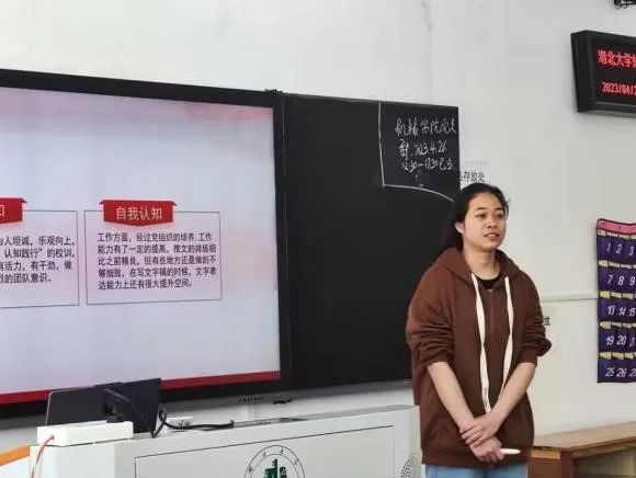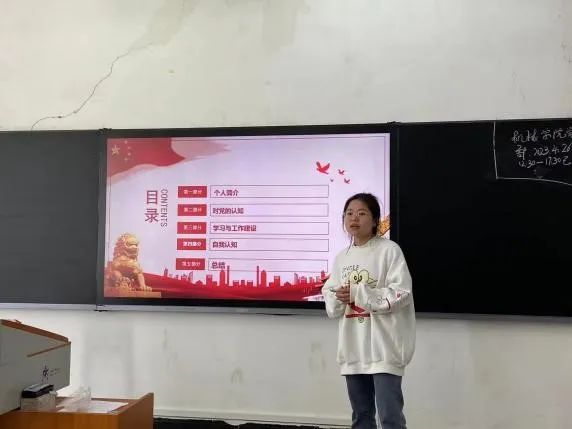 32位入党积极分子依次入场进行两分钟的PPT展示,答辩同学全面客观地从个人介绍,学习方面,学生工作,入党动机,志愿服务等方面的表现进行逐一汇报,向评委们全面展示了自己的综合素质,同时敢于承认自身的不足并明确改进方向。随后,评委根据答辩内容进行提问,进一步了解同志们的情况,并进行打分。