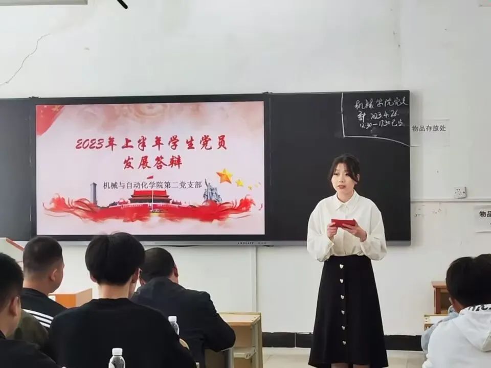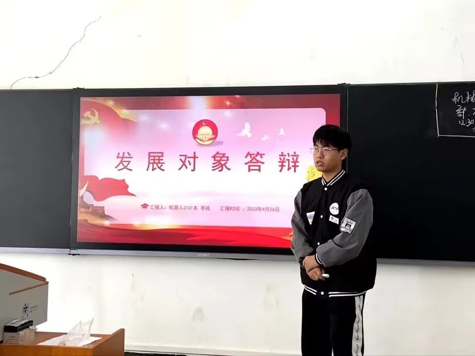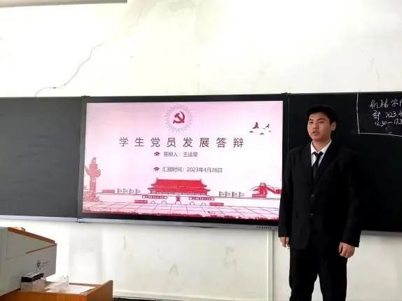 为端正学生入党动机,考察入党积极分子的政治素养,提升学生党员发展质量,4月26日中午12:30分,bat365正版唯一官网于知真楼301召开2023年上半年学生党员发展答辩会,共有32位入党积极分子进行了现场答辩,bat365正版唯一官网党总支书记陈驰、学生党支部书记王松、学生党支部指导老师石晶晶、分团委学生会指导老师李伟健、在校学生党员及部分入党积极分子参加。会议由陈雨同志主持。