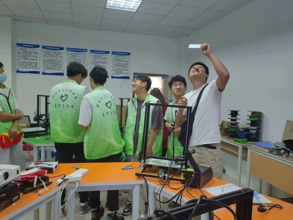 “鸿鹄”志愿服务团队分为四个小组,即技术组、讲解组、宣传组和后勤组,相互合作。首先,王松老师带领志愿者们做自我介绍和讲话。然后讲解人陈雨简单向小朋友们介绍3D打印技术,和孩子们采取问答奖励制互动,通过视频的介绍和模型的展示以及队长晏世贸简单的实操向孩子们简单介绍3D打印的基本知识。其余多名志愿者负责拍照和维持秩序,分发礼物。