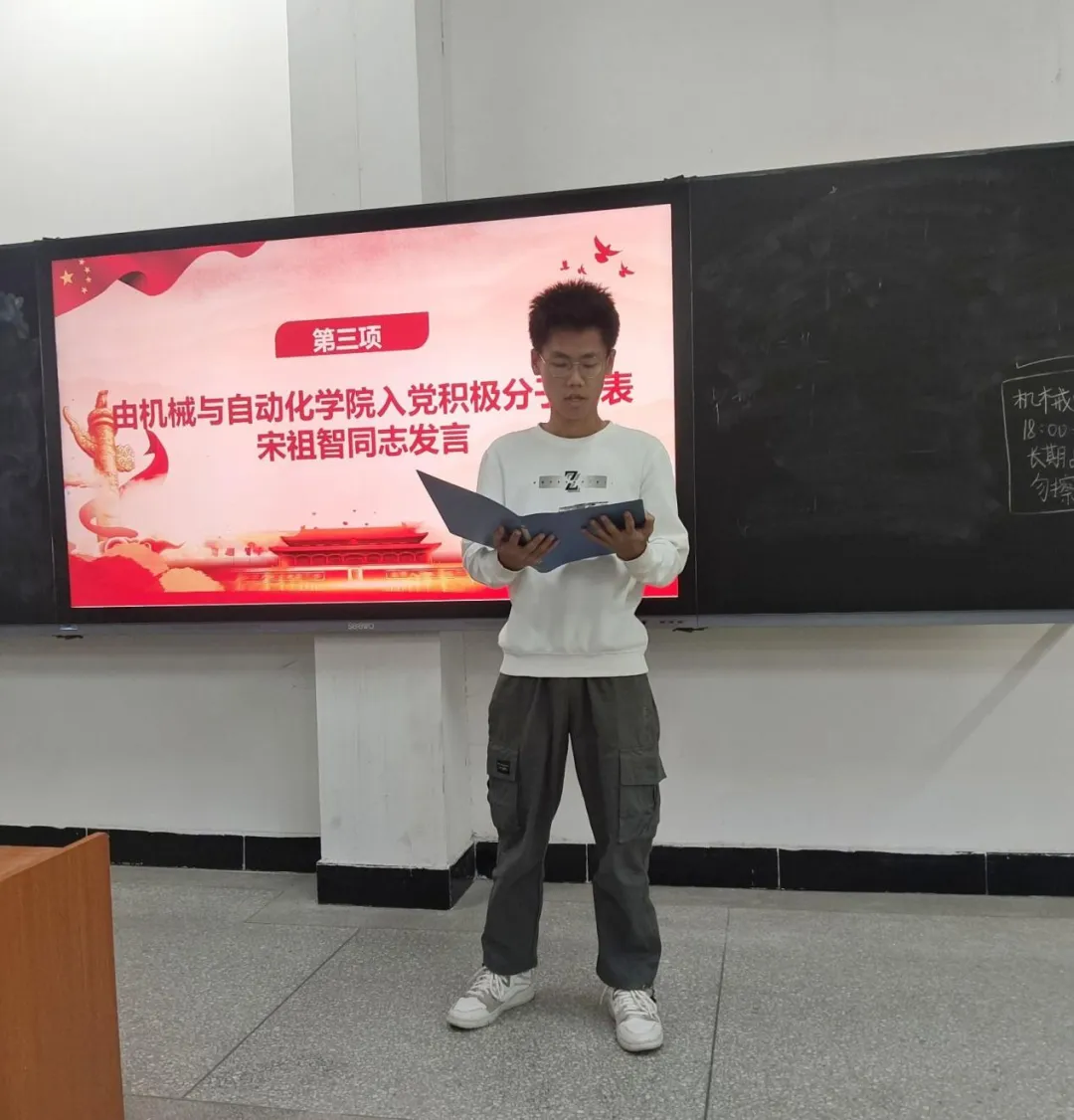 bat365正版唯一官网入党积极分子代表宋祖智上台发言,表示要坚定信仰,忠诚于党;勇于担当,服务人民;严格自律,进一步端正学习态度与入党动机,不断加强理论学习,提高政治素养,时刻向党组织看齐,以党员标准严格来要求自己,不忘初心,担当使命,向成为一名合格的共产党员不断努力。