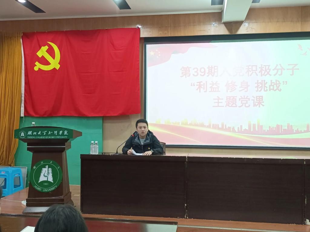 11月9日下午16:00,bat365正版唯一官网联合艺术与设计学院于学术报告厅202开展以“利益·挑战·修身”为主题的专题党课,由艺术与设计学院党总支副书记陈志昂主讲,bat365正版唯一官网和艺术与设计学院第39期党校全体学员参与学习。