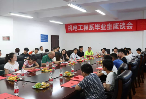 为进一步做好2018届毕业生的返校工作,促进毕业生和在校师生的信息交流,bat365正版唯一官网于2018年6月14日在知远楼601会议室举行了2018届毕业生座谈会。bat365院长王代萍老师、副书记杨英老师、副主任陈驰老师、辅导员王松老师、石晶晶老师、教学秘书甘雨老师、教师代表张斯阳老师、陈烨欣老师、陈艳老师,以及2018届优秀毕业生代表和机电工程系15级和16级各班学生代表参加本次座谈会。