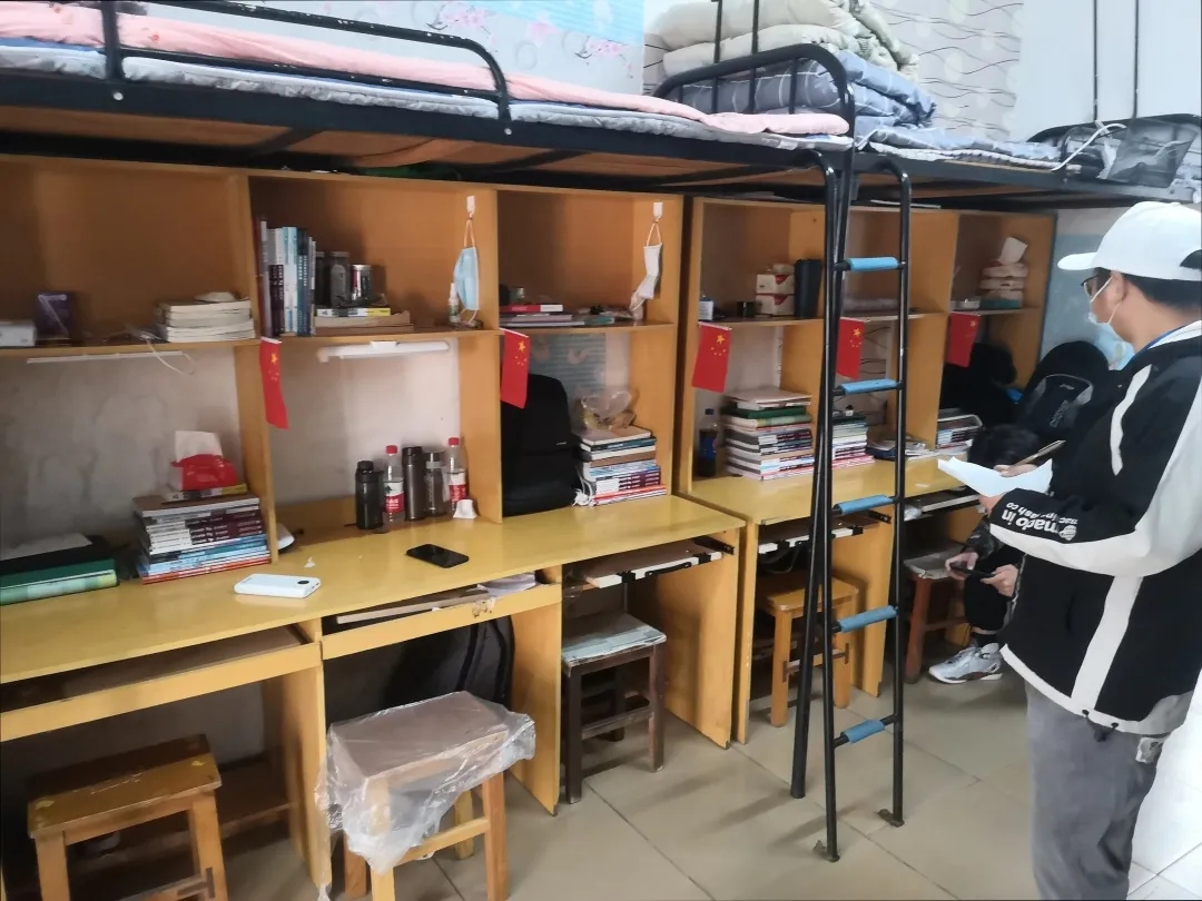 在检查过程中,评分老师对卫生做出点评和指导,各位同学积极配合,极大地提高了检查人员的效率。