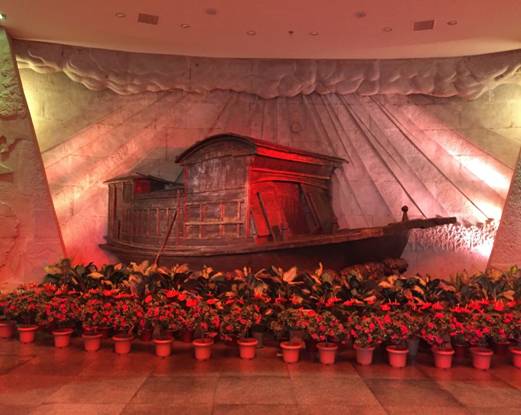 考察第一站就来到了浙江嘉兴市,我们有6名学生在当地的浙江凡华电子有限公司顶岗实习。早上7点十分,火车到达嘉兴站,一下火车,我们就感受到寒冬的凉意,空气中弥漫着湿意,虽经历了长途跋涉略有疲惫,但下火车后,精神也为之一振。时间尚早,这座城市也还在慢慢苏醒。我们的考察小团队也放慢了脚步,王代萍主任突然兴致盎然的问到:“你们知道嘉兴最有名的是什么吗?”我们纷纷回答当地的土特产品,王主任一一摇头,他揭晓答案是“南湖红船”,一语惊醒对一座城市的记忆:1921年7月23日,中国共产党第一次全国代表大会在上海秘密召开。会议临近结束,遭法租界巡捕的袭扰而被迫停会,根据上海代表李达的夫人王会悟的建议,8月1日会议转移到嘉兴南湖的一条游船上继续举行。在这条红船上,会议通过了第一个《中国共产党章程》,宣告了中国共产党的诞生,从此中国革命翻开了新的一页。