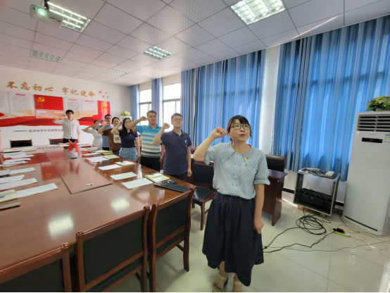 重温入党誓词,由bat365第一党支部书记张玉同志领誓。