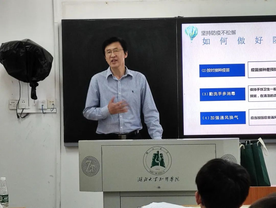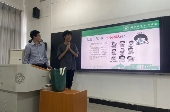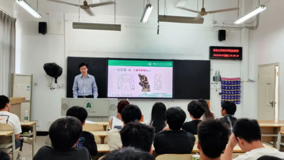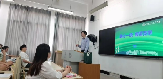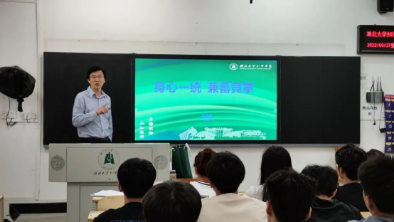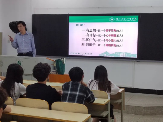 高校长以“身心一统 兼蓄竞攀”为题,从四个方面结合自己的成长所思、读书所悟,告诉同学们要做一名表里如一,身心健康、坚强,努力积累知识,提升综合素质,力争上游的大学生。