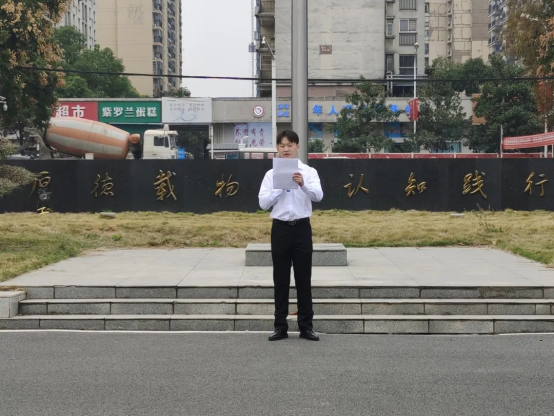 2022年10月24日早上七点整,bat365正版唯一官网bat365正版唯一官网于学校大门升旗台举行升旗仪式。升旗仪式开始由主持人袁依梦解说升旗仪式流程。