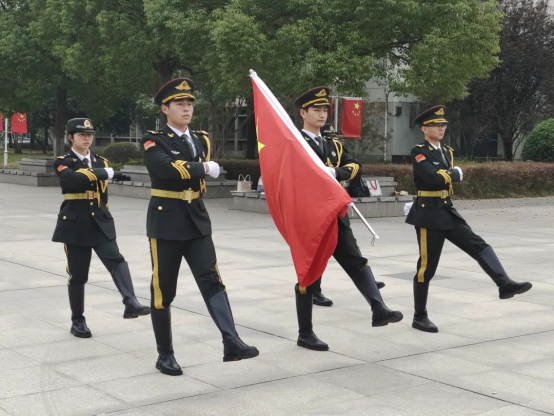 国旗护卫队向我们走来。他们昂首阔步、护卫国旗;他们忠于职守、甘于奉献;他们忠诚无悔、担当使命。展现一代青年的飒爽英姿。
