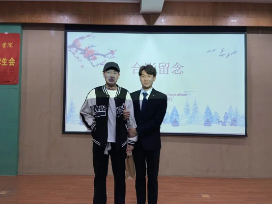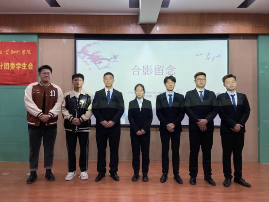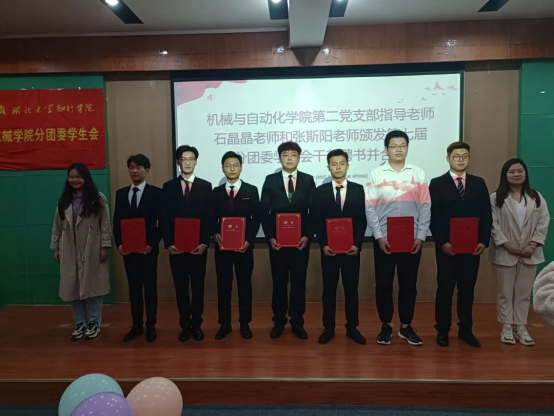接着bat365正版唯一官网第二党支部指导老师石晶晶老师和张斯阳老师颁发第七届分团委学生会干部聘书并合影。