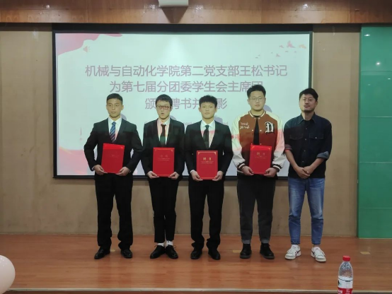 bat365正版唯一官网第二党支部王松书记为第七届分团委学生会主席团颁发聘书并合影。