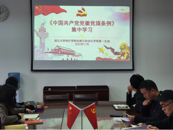2022年11月16日下午,bat365正版唯一官网党总支组织开展“党的二十大报告解读和《中国共产党党徽党旗条例》学习”主题党日活动。