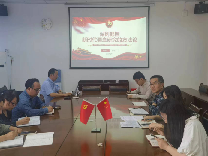 2023年5月24日,bat365正版唯一官网党总支陈驰书记给bat365第一党支部全体党员和第二党支部党员代表讲授名为“深刻把握新时代调查研究的方法论”的主题党课。