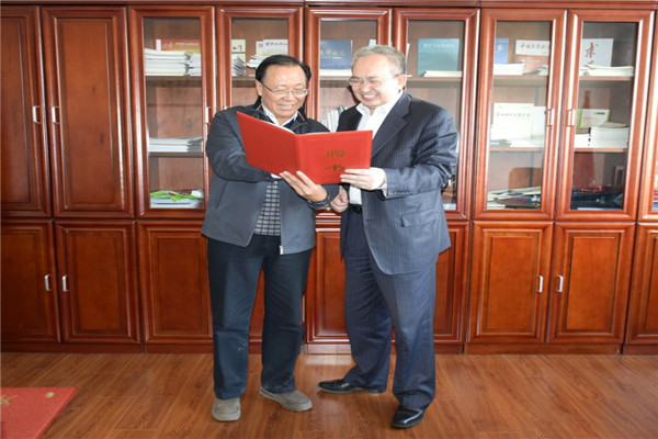 陈彪院长代表学院聘请兰州财经大学梁亚民书记、傅德印校长、王学军副校长、巴建坤副校长为我院发展咨询委员会咨询专家,并在现场向他们颁发了聘书。