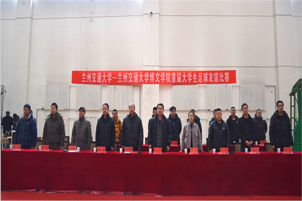 2016年12月31日上午9:30,兰州交通大学——兰州交通大学博文学院首届大学生足球友谊比赛在我院体育馆隆重召开。出席开幕式的兰州交通大学领导有党委(校长)办公室刘欣副主任、体育运动委员会副主任贠虹、体育部主任乔梁、体育部副主任张正红,体育部副主任张连、教练员藏谷钰龙。参加开幕式的我院领导有刘彦凯副院长、办公室负责人郑建平、学生处处长刘炳田、体育部主任黄丽、体育部副主任郑寅、体育部副主任王国萧、教练员刘庆大。开幕式由刘炳田处长主持。