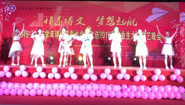 表彰大会结束后,充满活力的藏族舞《喜相会》拉开“情系博文 梦想起航”毕业生文艺晚会的序幕,晚会节目内容丰富多彩,现代舞《Hot Pink》、《RHYTHM TA》,歌曲《感谢》、《爱因为在心中》,相声《青春逗趣》以及《棍舞乾坤》等节目,不仅表演精彩,而且体现了我院大学生良好的精神风貌,表演牵动着每一位观众的心,引起了阵阵喝彩。