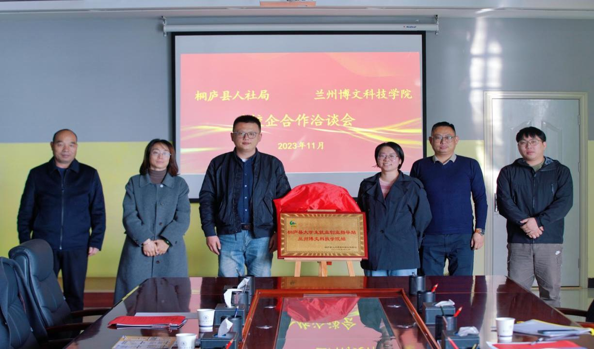 11月8日下午,桐庐县人社局与我校政校企合作洽谈会在北校区创客空间会议室举行。桐庐县人才就业处副主任邹旭霞,杭州科德磁业资源部部长李晨枫,我校招生就业处处长赵存良,机电工程学院院长苗莉,经济与信息管理学院副院长刘炳田,电信工程学院副院长马白出席参加洽谈会。洽谈会上,赵存良首先对莅临学校的领导和企业代表表示热烈欢迎,并就我校办学情况进行了介绍,他表示近年来Beat365中国唯一官方网站办学水平逐步提高,我校始终坚持“以服务为宗旨,以就业为导向”的方针,并希望我校政校企合作能更进一步。随后,邹旭霞介绍了桐庐县招才引才政策及校企合作情况,李晨枫对本次双选会各企业岗位需求情况进行了详细介绍。最后,桐庐人社局授牌我校大学生就业创业指导站。