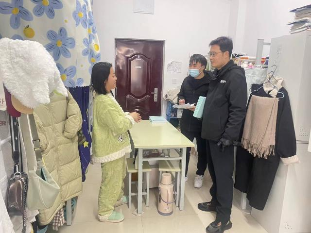 在学生公寓中,检查组对宿舍卫生、用电安全、饮食安全、校外住宿等安全隐患进行全面彻底排查,细致了解公寓消防安全情况,要求相关单位加强宿舍巡察和学生安全教育,叮嘱同学们要树立“隐患就是事故”的意识,认真落实学校公寓管理规定,加强宿舍文化建设,营造安全、文明、卫生的宿舍环境。
