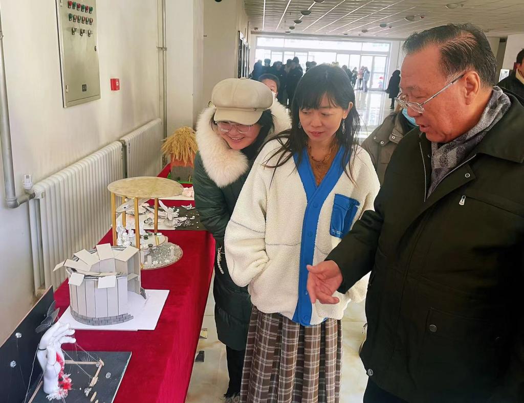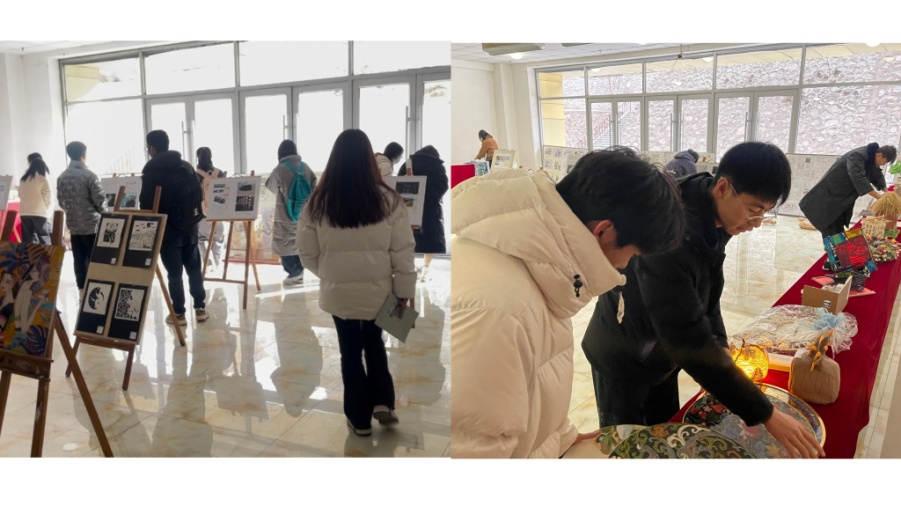 活动现场,工程管理学院的数字技术赋能下的古代园林思想在当代的延续和发展项目,将实景环境重现,实现古典园林三维空间模型与客观环境的融合;经济与信息管理学院的绝处逢生视频作品中独特的创意和精美的画面让人难以忘怀,每一个镜头都充满了故事性和感染力,令人沉浸其中;艺术设计学院集中展示了掐丝、书籍装帧、扎染、沥粉、纸浆画、立构作品等。