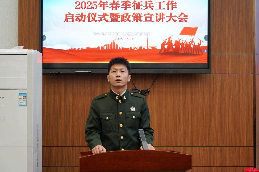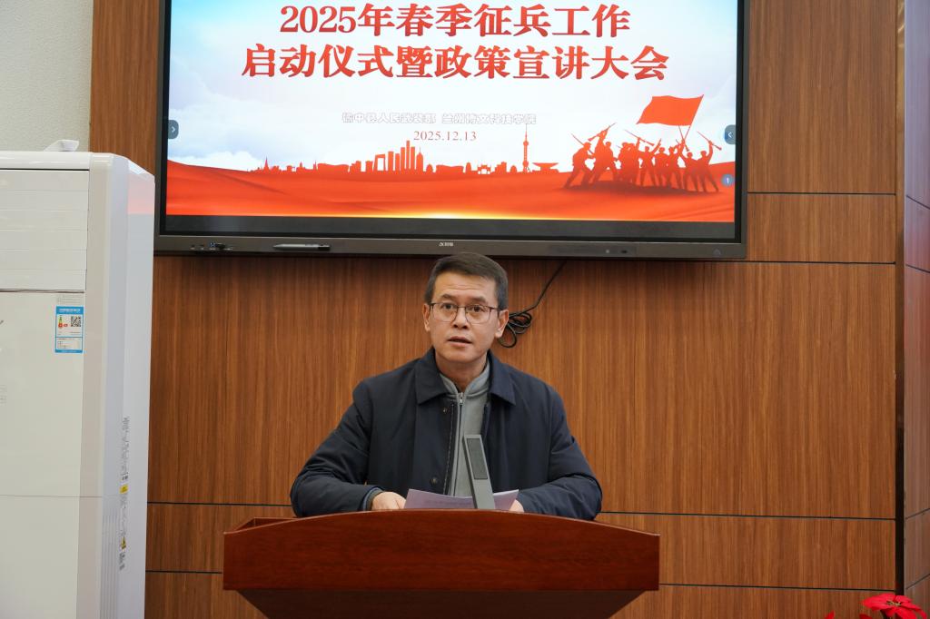 为深入学习贯彻习近平强军思想,进一步营造“携笔从戎、报效祖国”的浓厚氛围。12月13日下午,学校召开了2025年春季征兵工作启动仪式暨政策宣讲大会。校党委书记阳红、副校长刘德光、榆中县人民武装部军事科参谋金鑫、榆中县武装专干彭文贵、学生处负责人出席会议。