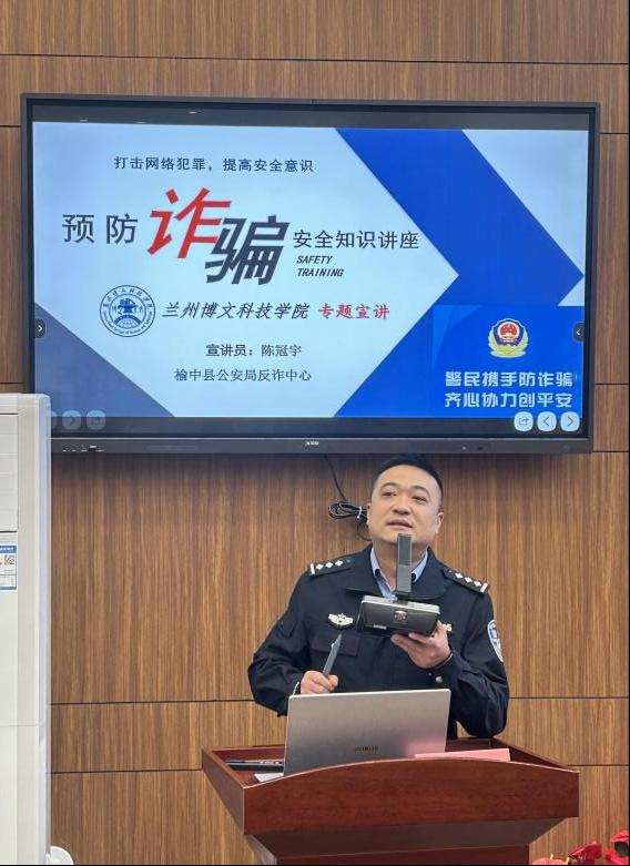 12月18日,学校联合榆中县公安局举办了“预防电信网络诈骗、提升安全防范意识”主题讲座,榆中县公安局反诈中心警官陈冠宇、和平派出所警官范聚福担任主讲嘉宾。校领导、学校党委办公室、学生处、各二级学院及相关处室负责人出席讲座,教师及学生代表300余人参加。